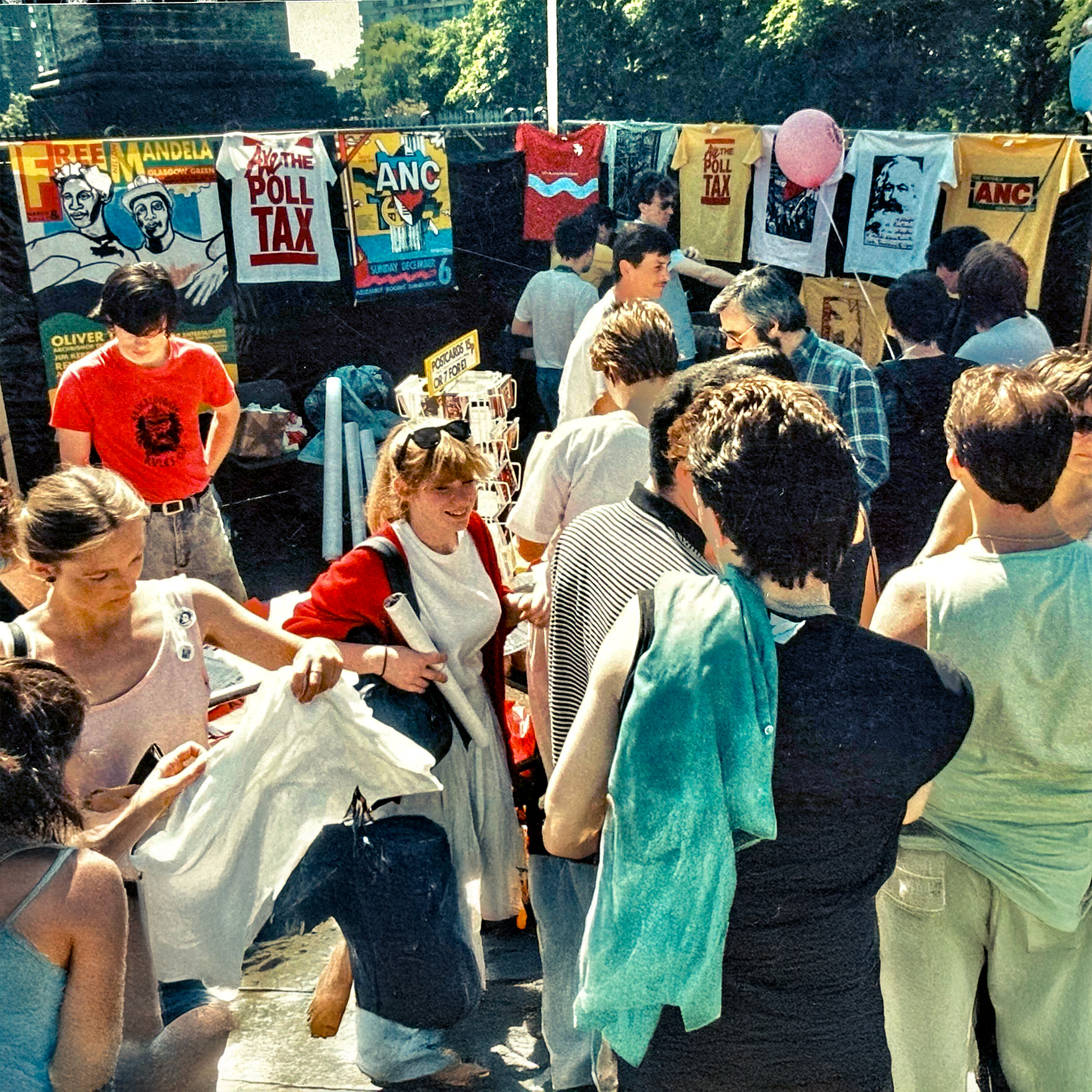 Free Nelson Mandela. T shirt. From an original poster designed in 1988 by Alistair McCallum for the Scottish Committee Anti Apartheid.