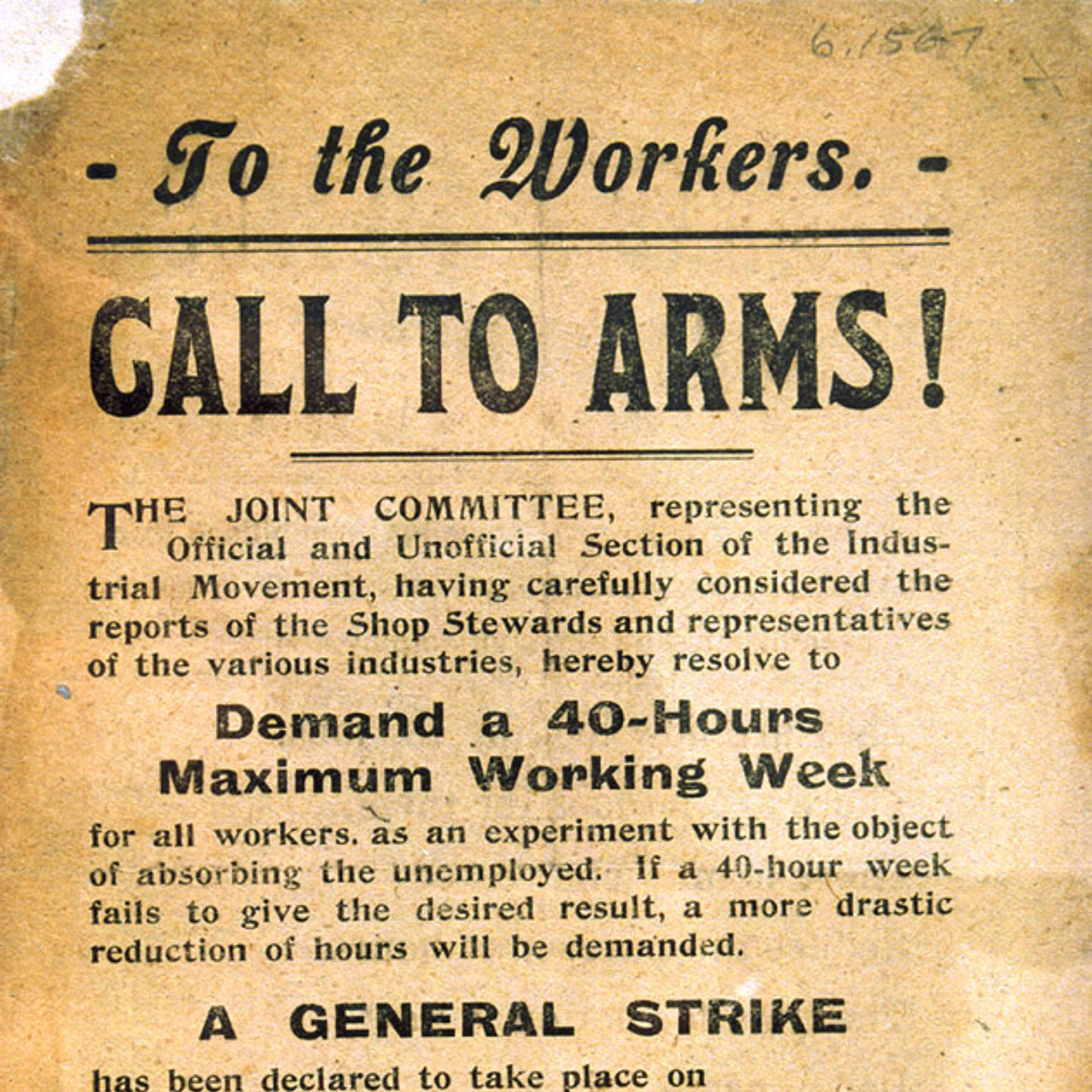 Workers strike for a reduction in the working week from 56 to 40 hours.